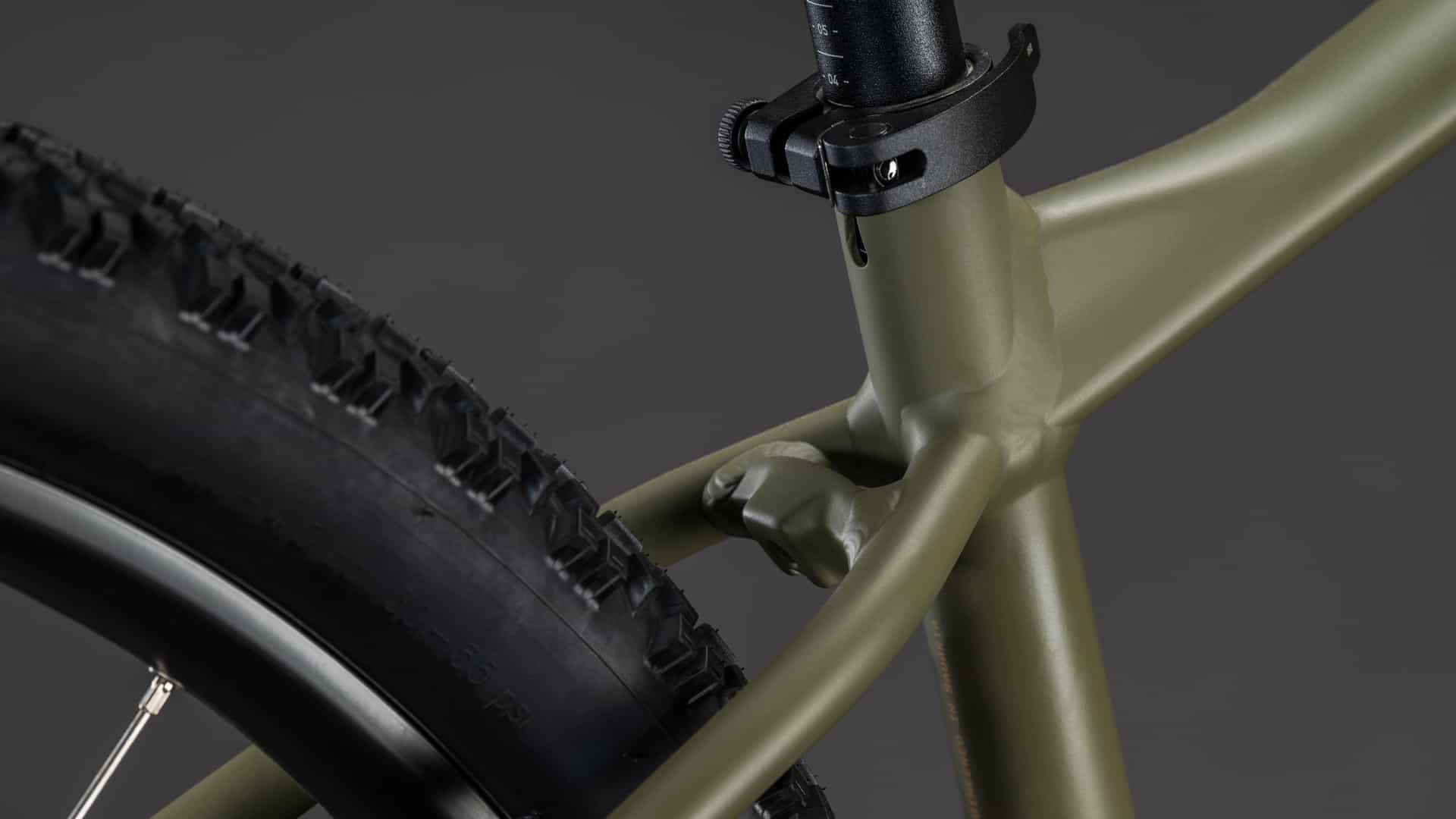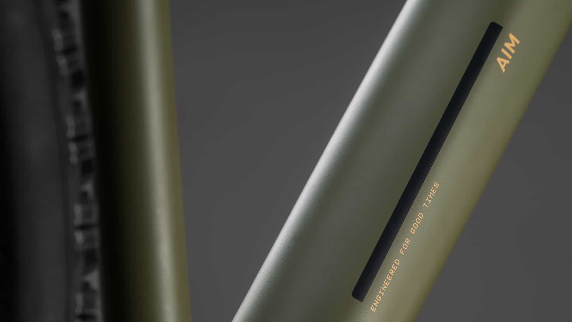 Der Aim Rahmen besticht mit seinem supercleanen Look – verantwortlich dafür: die im Smooth Welding Verfahren hergestellten Verbindungen an Steuerrohr und Sattelrohr und die ins Innere verlegten Züge, welche die aufgeräumte Optik noch unterstreichen. Außerdem gibt’s ein geschraubtes Tretlager und eine Aufnahme für Flat Mount Scheibenbremsen, die nahtlos in die Seitenständeraufnahme integriert ist. Montagepunkte für ACID Schutzbleche und Gepäckträger sind auch mit dabei. Die spezielle Geometrie hat ein niedrigeres Oberrohr für superzuverlässiges Handling und lässt genug Platz für breite, griffige, komfortable 2.25 Zoll Reifen. Dazu ist unser Size Split System breit aufgestellt – so finden alle das für sich und ihre Körpergröße perfekt passende Aim.