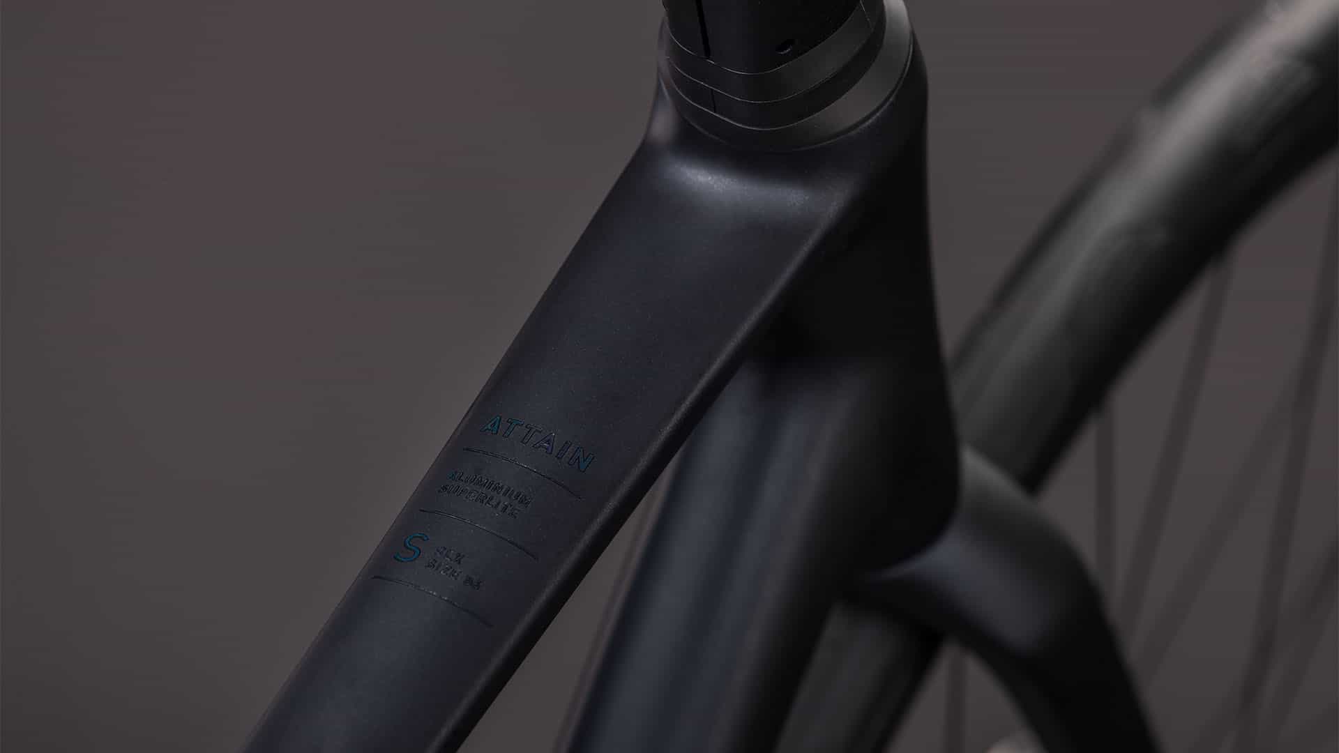 Bei der Entwicklung des semi-aerodynamischen Attain Rahmens aus 6061er-Aluminium haben wir viel Wert auf Performance und zugleich Komfort gelegt. Mit seinem tränenförmigen Unterrohr schneidet er zum einen pfeilschnell durch die Luft. Zum anderen sorgt die interne Zugverlegung für eine aufgeräumte Optik – und die glatten, im Smooth Welding Verfahren gestalteten Rohrverbindungen unterstreichen den hochwertigen, überaus eleganten Look. Für superpräzises Lenken und direkte Kraftübertragung sind das konische Steuerrohr und Steckachsen vorne und hinten verantwortlich. Schlanke Sitzstreben und die Vollcarbongabel absorbieren Schläge und Vibrationen von der Straße und optimieren so den Fahrkomfort. Was noch? Genügend Reifenfreiheit für die Montage von bis zu 32 mm breiten Pneus, eine sauber integrierte Sattelklemmung und Aufnahmepunkte unter dem Oberrohr. Also alles da, was es für genialen Fahrspaß braucht – aufsitzen, antreten und genießen!