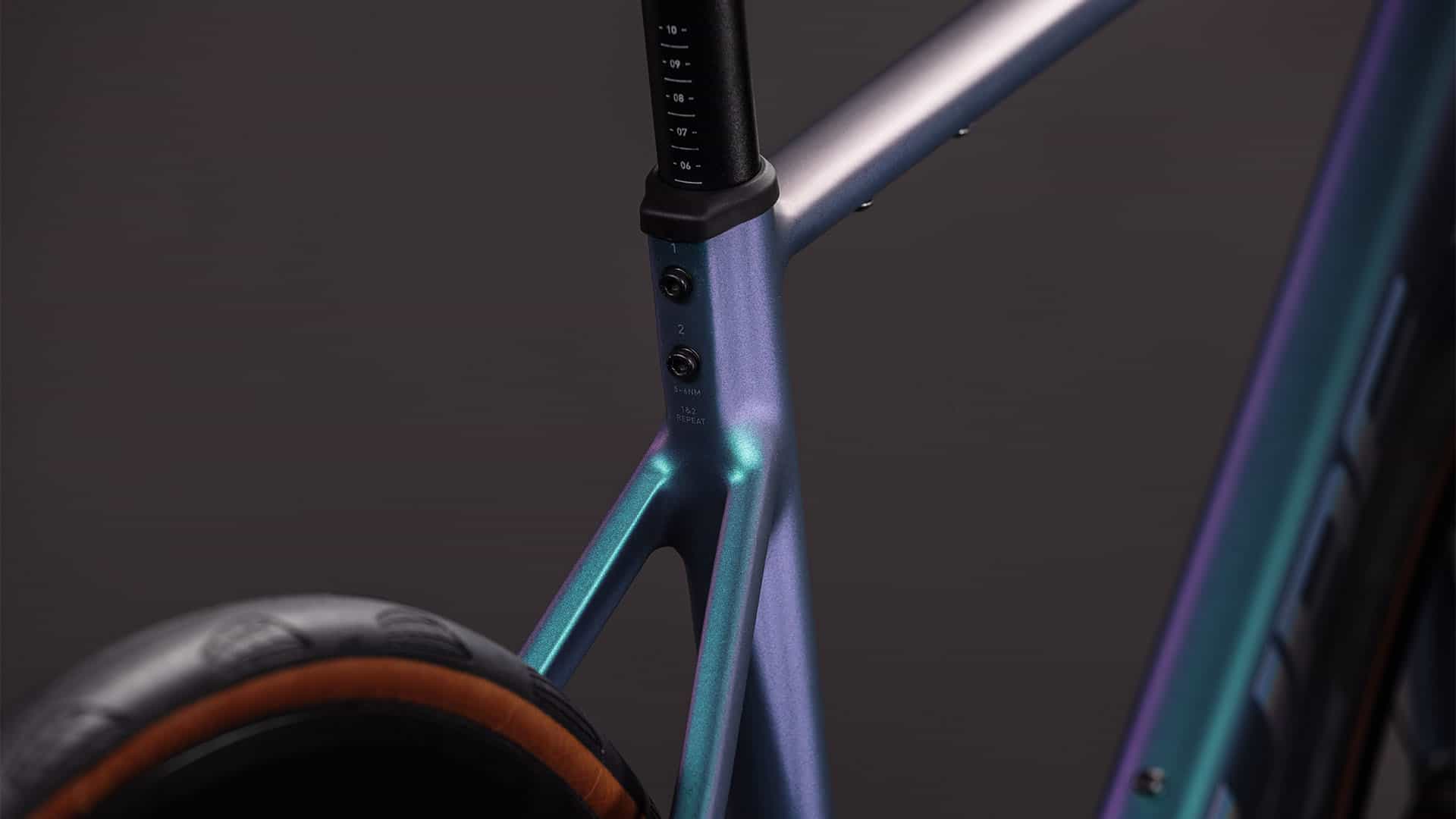 Bei der Entwicklung des semi-aerodynamischen Attain Rahmens aus 6061er-Aluminium haben wir viel Wert auf Performance und zugleich Komfort gelegt. Mit seinem tränenförmigen Unterrohr schneidet er zum einen pfeilschnell durch die Luft. Zum anderen sorgt die interne Zugverlegung für eine aufgeräumte Optik – und die glatten, im Smooth Welding Verfahren gestalteten Rohrverbindungen unterstreichen den hochwertigen, überaus eleganten Look. Für superpräzises Lenken und direkte Kraftübertragung sind das konische Steuerrohr und Steckachsen vorne und hinten verantwortlich. Schlanke Sitzstreben und die Vollcarbongabel absorbieren Schläge und Vibrationen von der Straße und optimieren so den Fahrkomfort. Was noch? Genügend Reifenfreiheit für die Montage von bis zu 32 mm breiten Pneus, eine sauber integrierte Sattelklemmung und Aufnahmepunkte unter dem Oberrohr. Also alles da, was es für genialen Fahrspaß braucht – aufsitzen, antreten und genießen!
