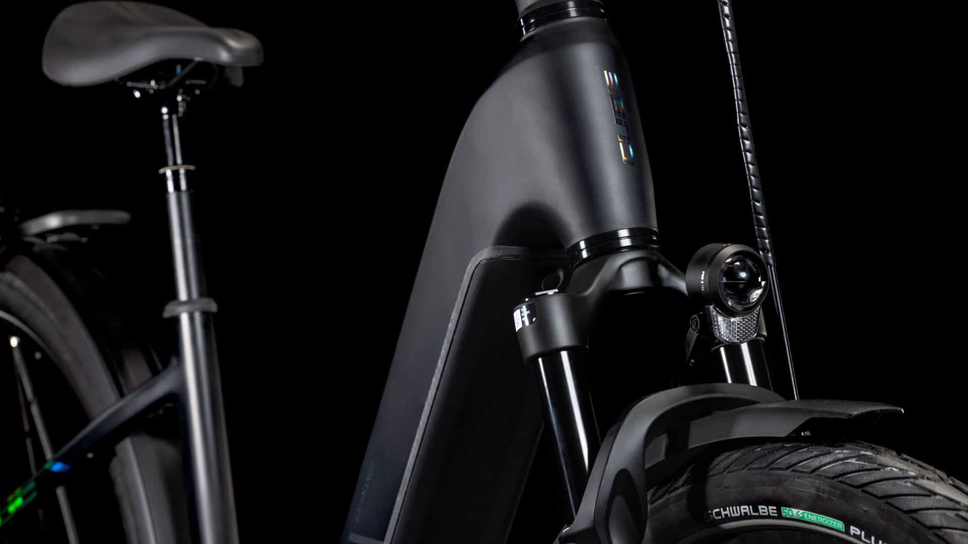 Der Tiefeinsteiger-Rahmen des CUBE Kathmandu Hybrid macht seinem Namen alle Ehre, denn er erleichtert das Auf- und Absteigen und die Tour kann direkt losgehen! Doch da ist noch mehr, zum Beispiel der samt 800 Wh PowerTube Akku ästhetisch und sauber ins Design integrierte CX Motor von Bosch. Unsere Efficient Comfort Geometry arbeitet harmonisch mit der 100 mm Federgabel Hand in Hand, was die Kontrolle vor allem unter schwierigen Bedingungen optimiert. Dazu die interne Zugverlegung, die der cleanen Optik des Chassis in die Karten spielt und den Wartungsaufwand maßgeblich reduziert. Was noch? Ein vielseitiges, beinahe unzerstörbares UDH für einfache Ersatzteilverfügbarkeit, ein integrierter Kettenschutz und unser stabiler, robuster, überaus formschöner integrierter Gepräckträger IC 3.0, auf dem alles Platz findet, was auf Abenteuertour mit muss.