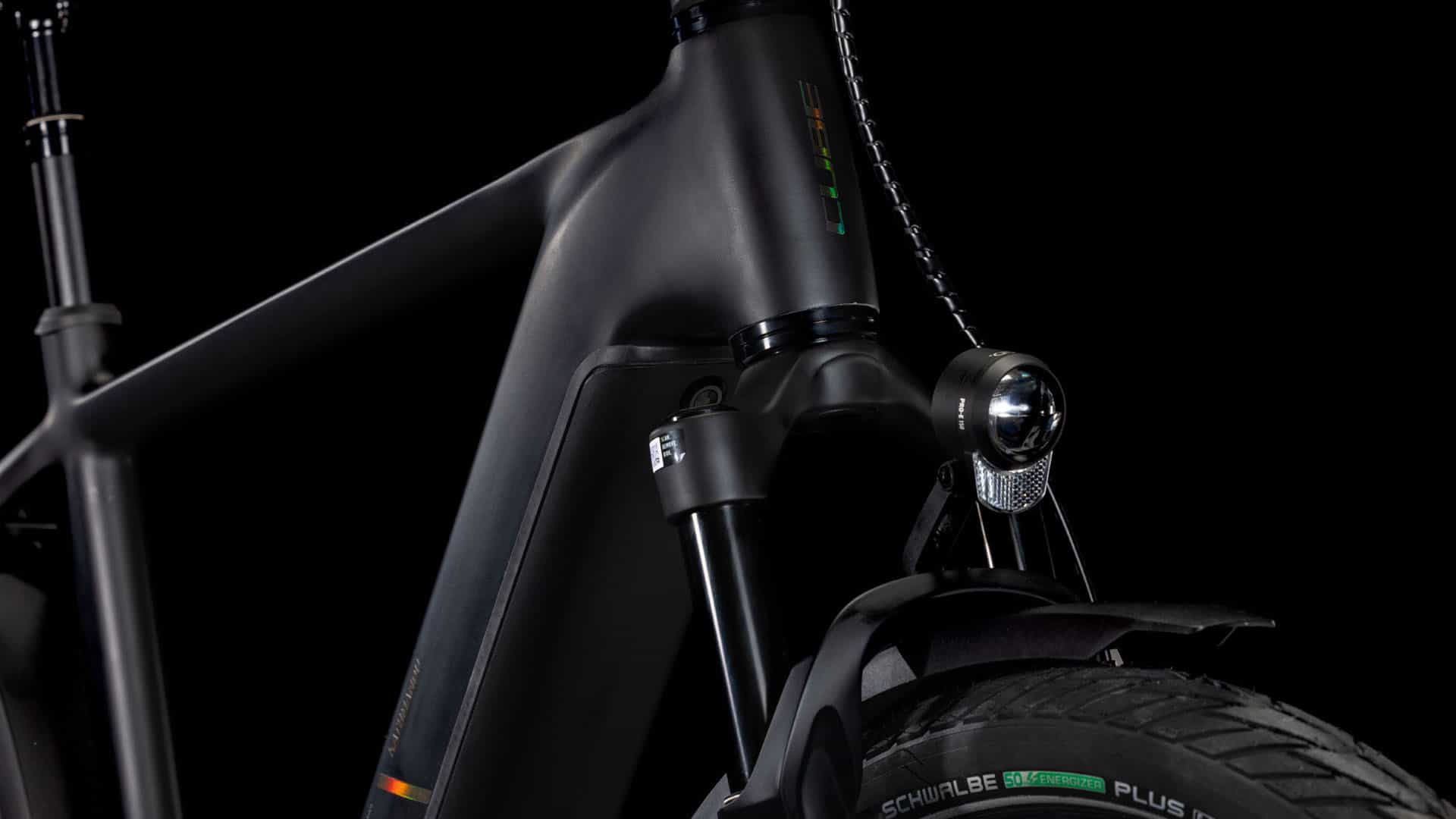 Der Rahmen des CUBE Kathmandu Hybrid sieht auf den ersten Blick vielleicht unspektakulär aus – der zweite enthüllt seine Eleganz, seine Klasse und die vielen Innovationen und cleveren Details. Der samt 800 Wh PowerTube Akku ästhetisch und sauber ins Design integrierte CX Motor von Bosch ist dabei nur der Anfang. Unsere Efficient Comfort Geometry arbeitet harmonisch mit der 100 mm Federgabel Hand in Hand, was die Kontrolle vor allem unter schwierigen Bedingungen optimiert. Dazu die interne Zugverlegung, die der cleanen Optik des Chassis in die Karten spielt und den Wartungsaufwand maßgeblich reduziert. Was noch? Ein vielseitiges, beinahe unzerstörbares UDH für einfache Ersatzteilverfügbarkeit, ein integrierter Kettenschutz und unser stabiler, robuster, überaus formschöner integrierter Gepräckträger IC 3.0, auf dem alles Platz findet, was auf Abenteuertour mit muss.