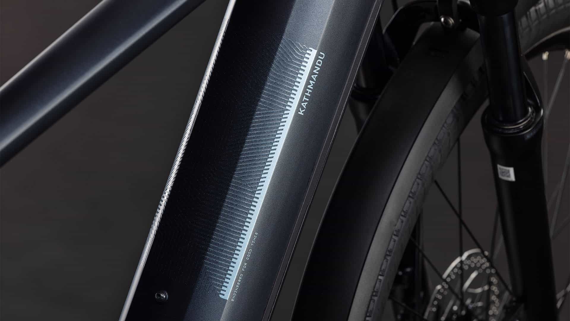 Der Rahmen des CUBE Kathmandu Hybrid sieht auf den ersten Blick vielleicht unspektakulär aus – auf den zweiten erschließen sich jedoch seine Eleganz und Klasse, außerdem die vielen Innovationen und cleveren Details. Dabei ist der samt 800 Wh PowerTube Akku ästhetisch und sauber ins Design integrierte CX Motor von Bosch nur eins der Highlights. Ein weiteres ist unsere Efficient Comfort Geometry, die harmonisch mit der 100 mm Federgabel Hand in Hand arbeitet, was die Kontrolle vor allem bei schwierigen Bedingungen optimiert. Dazu die interne Zugverlegung, die den cleanen Look des Chassis unterstreicht. Was noch? Ein vielseitiges, beinahe unzerstörbares UDH für einfache Ersatzteilverfügbarkeit, ein integrierter Kettenschutz und unser stabiler, robuster, überaus formschöner integrierter Gepäckträger IC 3.0, auf dem alles Platz findet, was auf Abenteuertour mit muss.