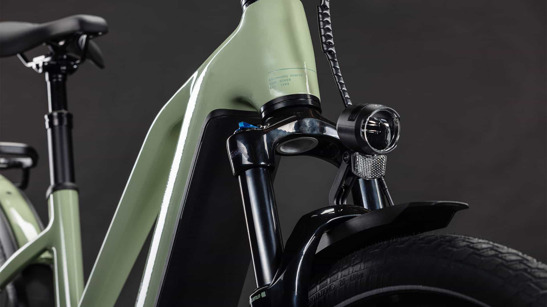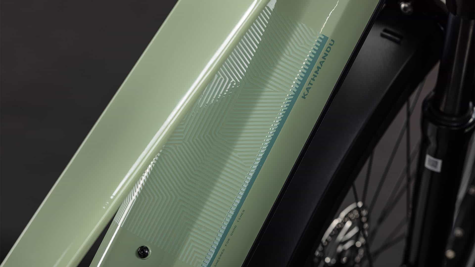 Elegantes, zeitloses Design – das ist das CUBE Kathmandu Hybrid. Auf den ersten Blick zumindest. Ein zweiter gibt den Weg frei auf jede Menge Innovationen und clevere Details. Dabei ist der samt 800 Wh PowerTube Akku ästhetisch und sauber ins Design integrierte CX Motor von Bosch nur eins der Highlights. Ein weiteres ist unsere Efficient Comfort Geometry, die harmonisch mit der 100 mm Federgabel Hand in Hand arbeitet, was die Kontrolle vor allem bei schwierigen Bedingungen optimiert. Dazu die interne Zugverlegung, die den cleanen Look des Chassis unterstreicht. Was noch? Ein vielseitiges, beinahe unzerstörbares UDH für einfache Ersatzteilverfügbarkeit, ein integrierter Kettenschutz und unser stabiler, robuster, überaus formschöner integrierter Gepäckträger IC 3.0, auf dem alles Platz findet, was auf Abenteuertour mit muss.