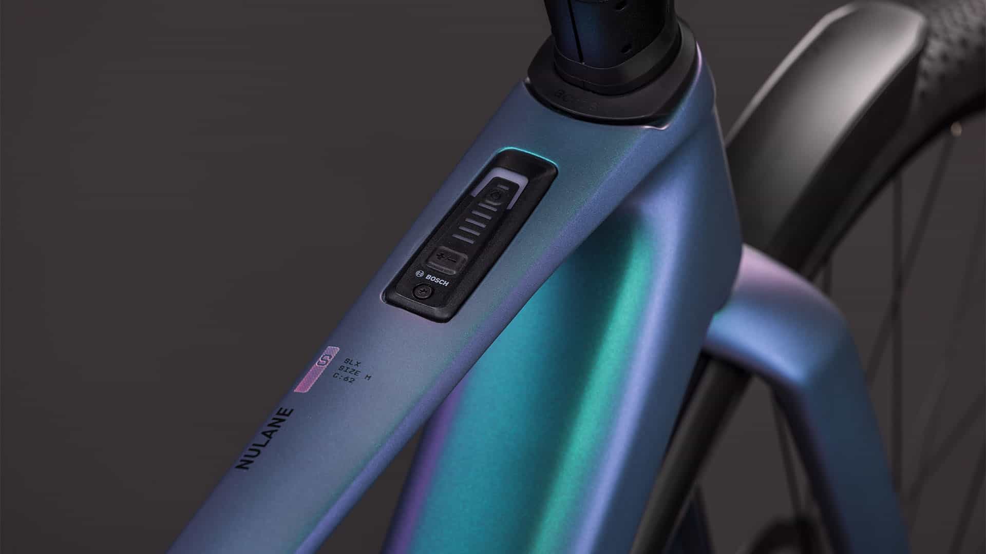 Der Carbonrahmen des Nulane Hybrid C:62 orientiert sich stark an dem unserer schnellen, leichten und robusten Gravel-Bikes und seine elegante Linienführung und cleane Optik lassen auf höchste Qualität schließen. Dank genügend Reifenfreiheit können bis zu 50 mm breite Reifen montiert werden, sogar mit Schutzblechen. Dazu haben wir einen Seitenständer und einen stabilen Gepäckträger am Heck integriert, was sich vor allem auf dem täglichen Weg ins Office und bei längeren Touren am Wochenende bezahlt macht. Außerdem Montagepunkte an der Gabel zum Anbringen eines weiteren Gepäckträgers. Sehen und gesehen werden – nichts leichter als das mit unserem X-Connect System für ein ACID Vorderlicht. Das Cockpit für den Bosch Antrieb fügt sich formschön ins Oberrohr ein, dazu gibt’s eine praktische Mini Remote am Lenker. Wer noch mehr Reichweite will und braucht, rüstet den Rahmen mit einem zusätzlichen 250 Wh PowerMore Akku auf. Was noch? Eine versteckte Sattelklemme, eine Direct Mount Kettenführung, Aufnahmen für einen Flat Mount Seitenständer, ein Boost Hinterbau und die Möglichkeit zur Integration eines UDH. Fazit: Dieser effiziente Alleskönner hat immer und überall die Nase vorn!