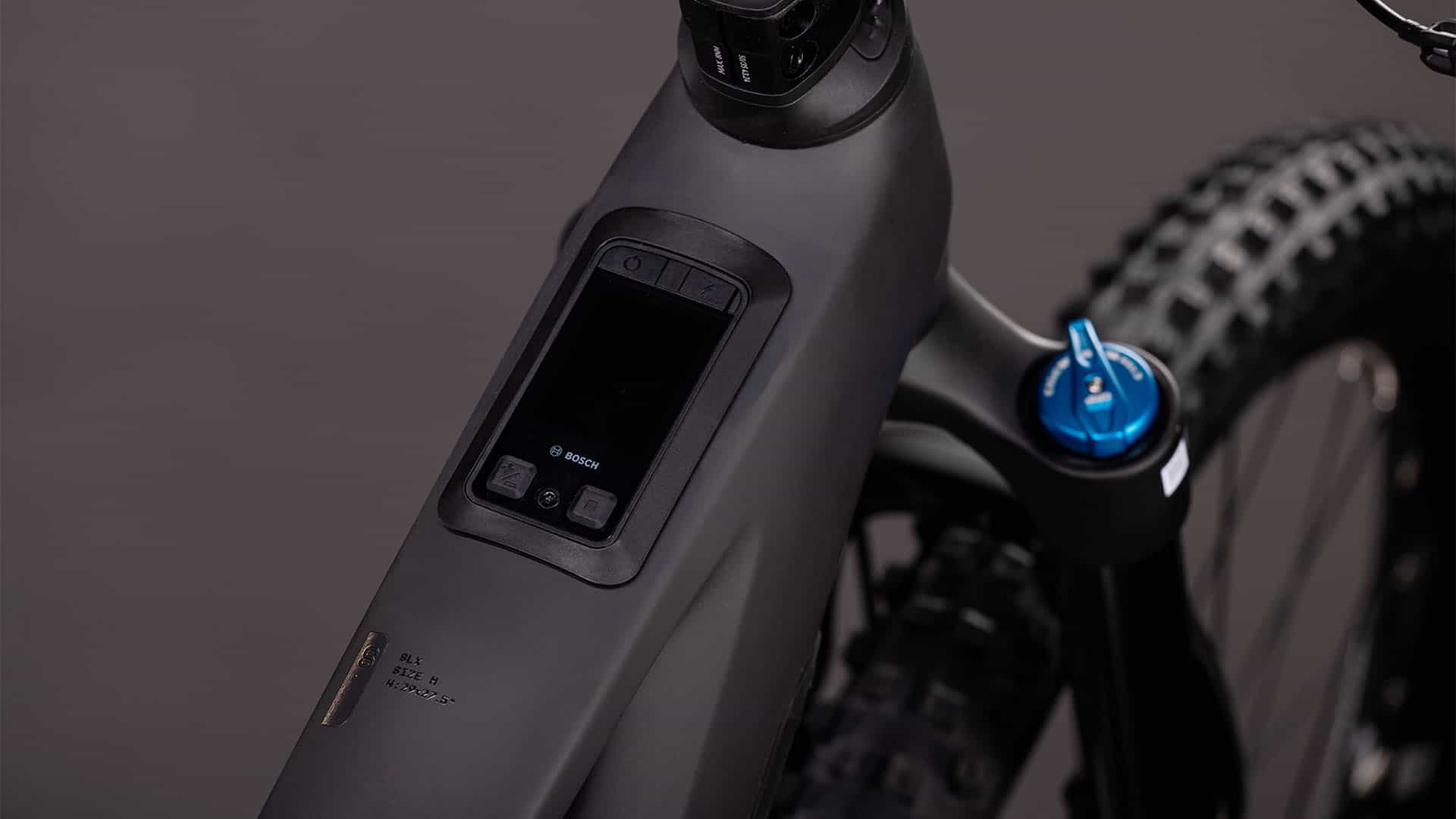 Der Rahmen des Stereo Hybrid ONE77 HPC ist wahrlich eine Klasse für sich, denn hier treffen 170 mm Federweg an der Front und am Heck auf ein Mullet-Set-up mit einem 29 Zoll Vorderrad und 27.5 Zoll Hinterrad. Damit werden Big-Mountain-Trail-Träume wahr! Wie immer bei CUBE maximal detailverliebt konstruiert auch der Rest: Integrated Cable Routing sorgt für einen supercleanen Look. Dazu kommt ein Steuersatz zur Winkelverstellung, mit dem sich das Handling an individuelle Vorlieben und Anforderungen anpassen lässt. Außerdem haben wir den 800 Wh starken PowerTube Akku gleich über dem Bosch CX Motor sauber und formschön ins Carbon-Unterrohr integriert. Für einfachere Ersatzteilverfügbarkeit gibt’s ein UDH am Aluminium-Hinterbau – und weil wir auch eine Direct Mount Kettenführung verbaut haben, geht’s mit diesem Fully selbst bei schwierigen Bedingungen weiter, weiter und immer weiter.